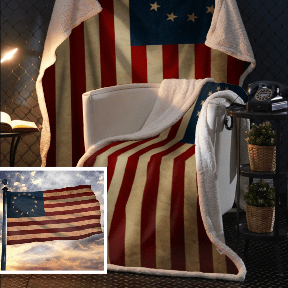 Betsy Ross Flag Sherpa Blanket - 50x60 + Free Matching 3x5' Single Reverse Flag